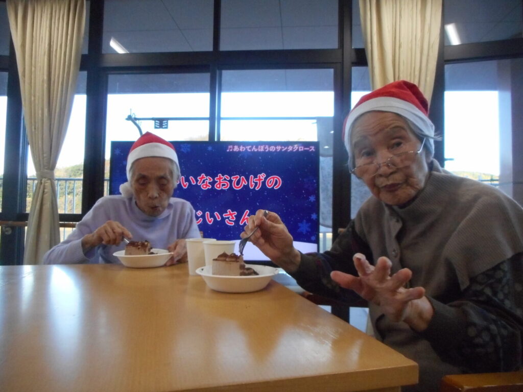 皆さんで体操をやったりケーキを食べたり…