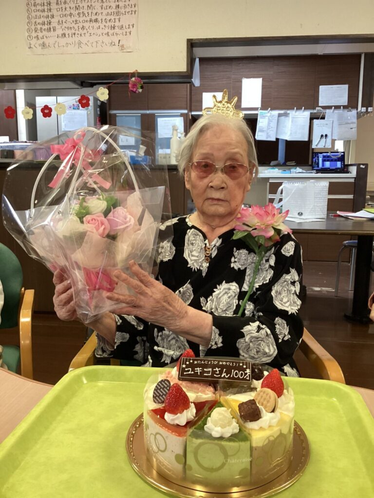 本日2月20日に100歳になられた利用者様のお誕生日を皆で