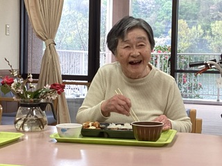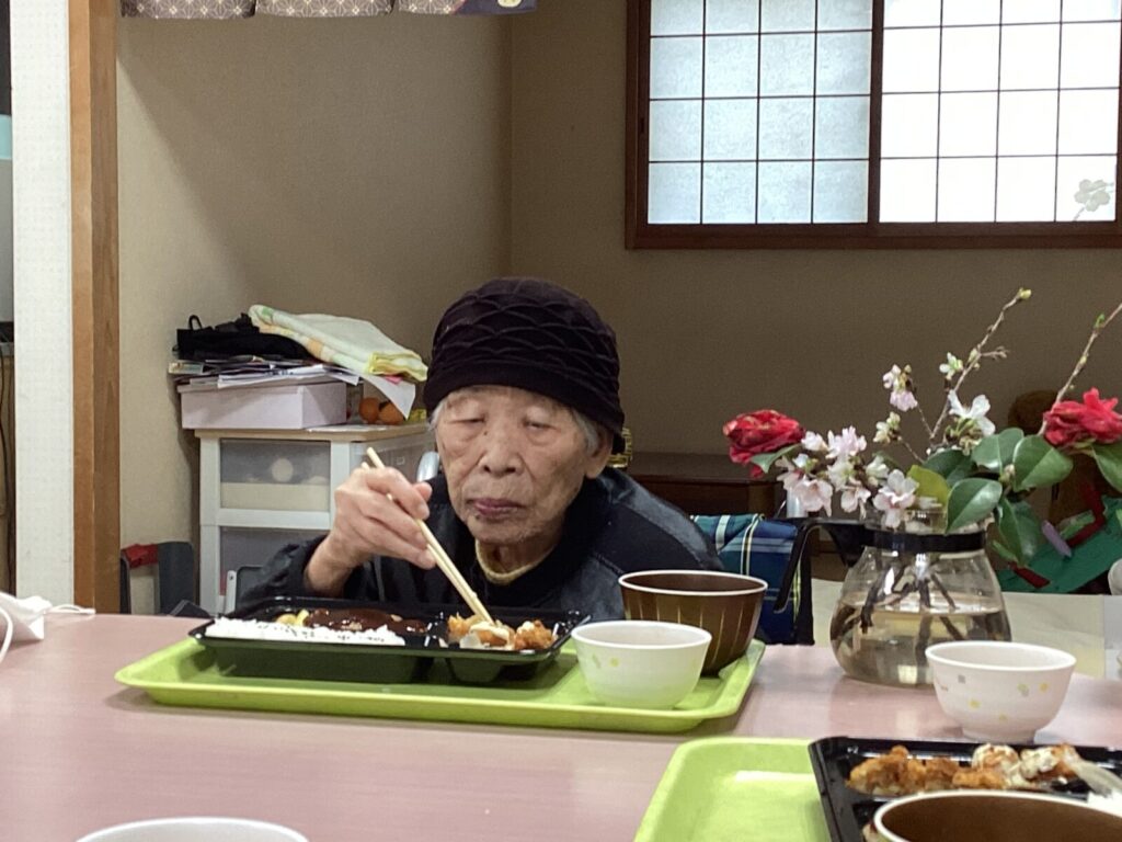 そこで、フロア内での食事会を開催。普段は殆ど食べない、お弁当だった為、皆さん遠足気分で楽しそうに