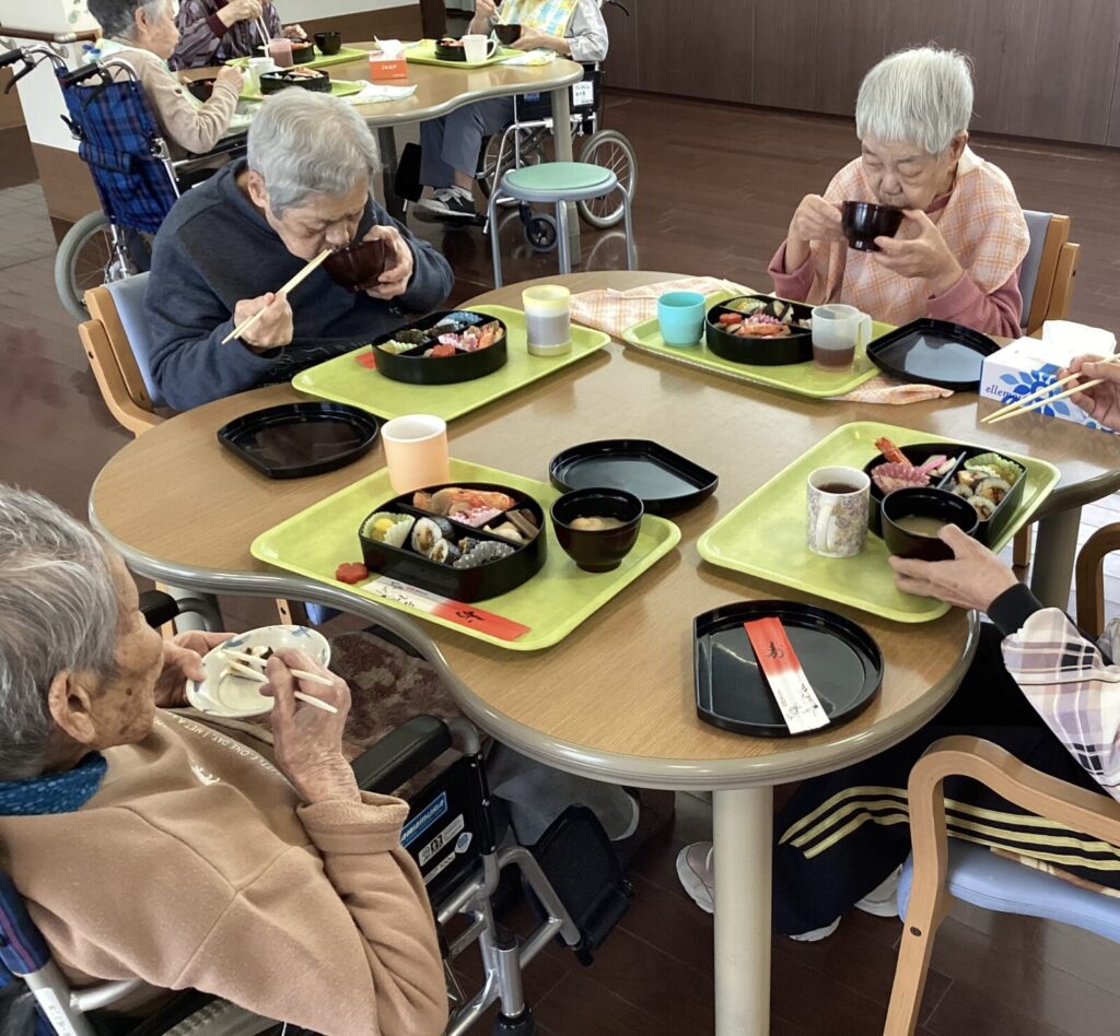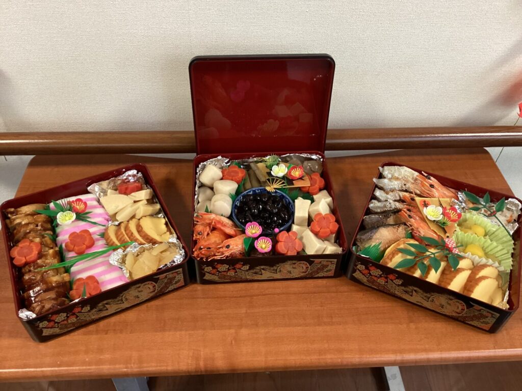 皆様が健康で幸せに過ごしていただけるよう願いをこめ、縁起物の詰まったお節をいだたきました