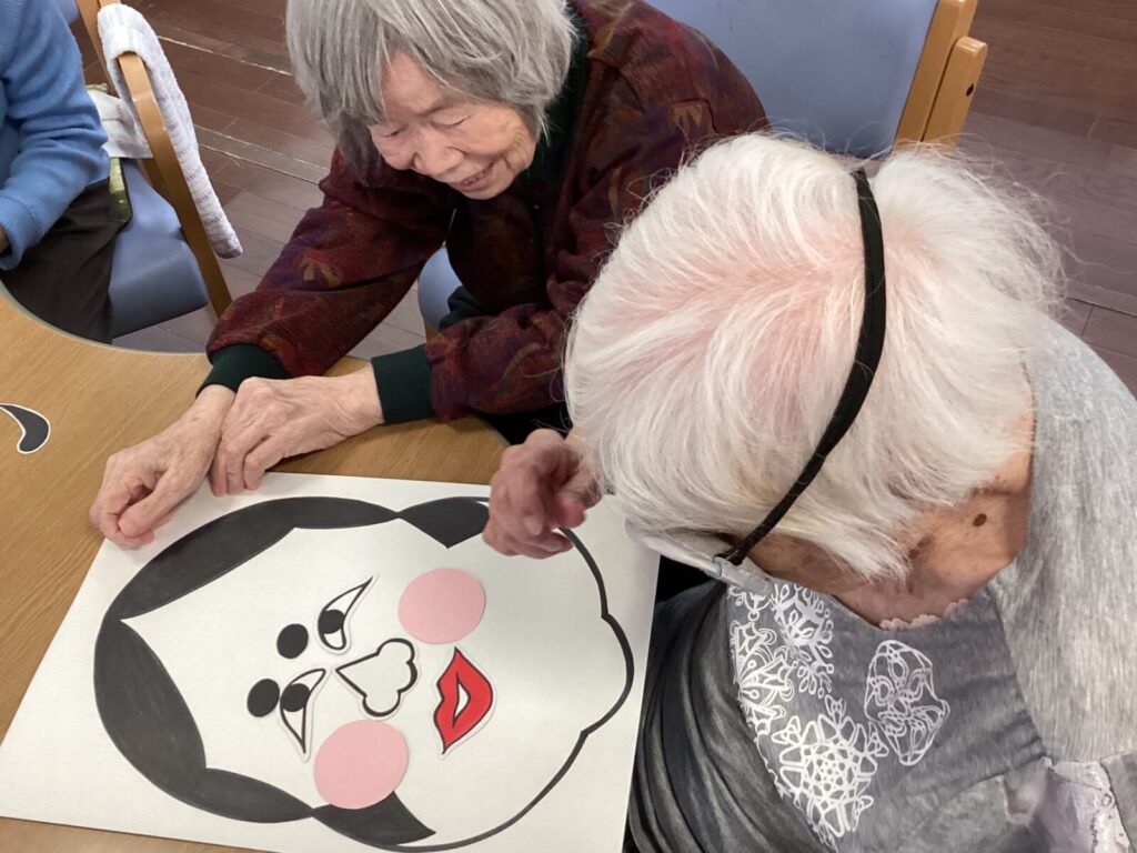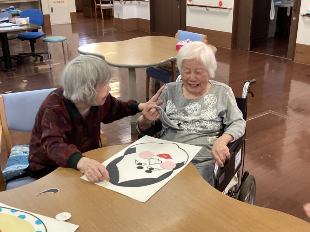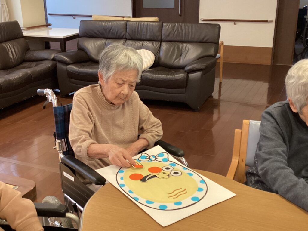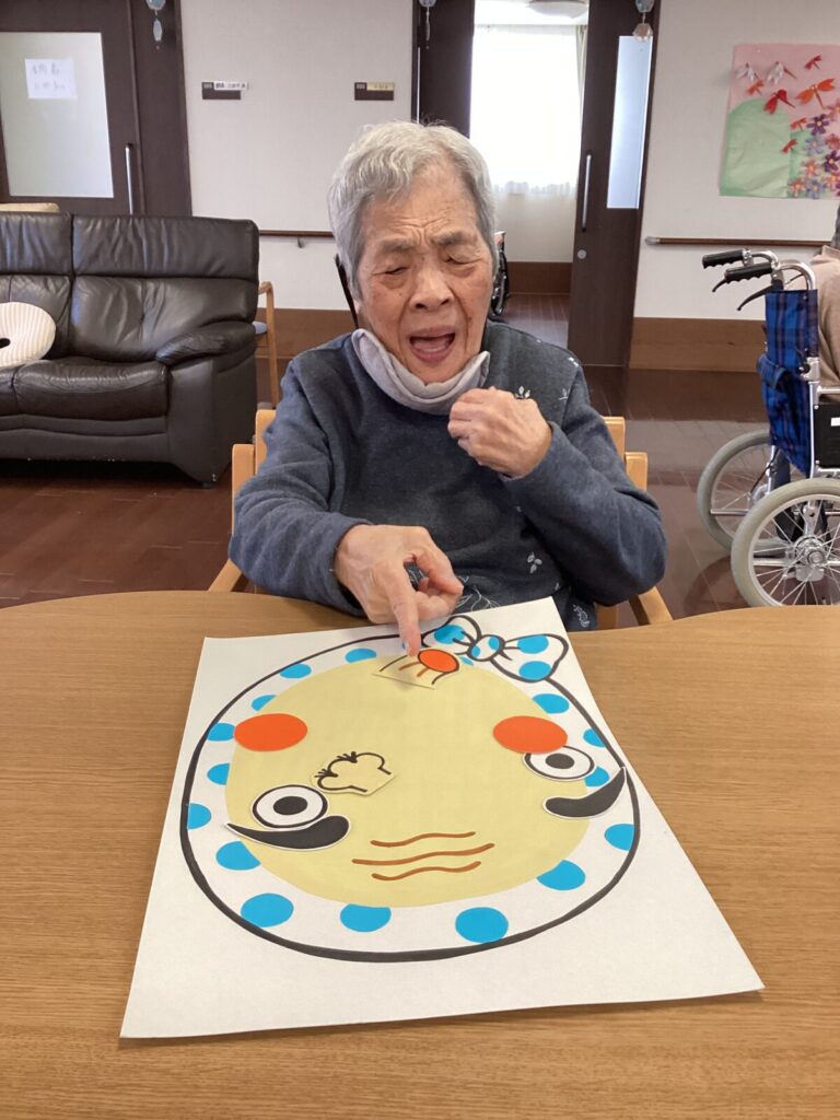 レクリエーションでは福笑いをし、完成品をを見て大笑いしております
