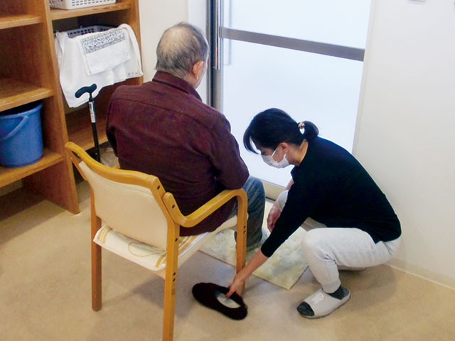 訪問介護とは 要介護者が住み慣れた家で長く生活が続けられるように支援するサービスです。 その人の心身の特性を踏まえて、能力に応じ自立生活ができるよう、できるだけその人に合ったホームヘルパーが訪問し炊事、食事、入浴、排せつ、掃除、洗濯、その他生活全般にわたる援助を行うとともに、ご家族の介護負担も軽減する介護サービスです。 お掃除介助介護スタッフ