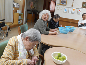 グループホームと併設されている「あいの里デイサービスセンター」へ行き、そこへ通っている方々と交流します。